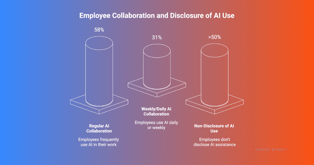 Over half of employees do not disclose when AI has supported their work, presenting AI-assisted outputs as their own. (KPMG)