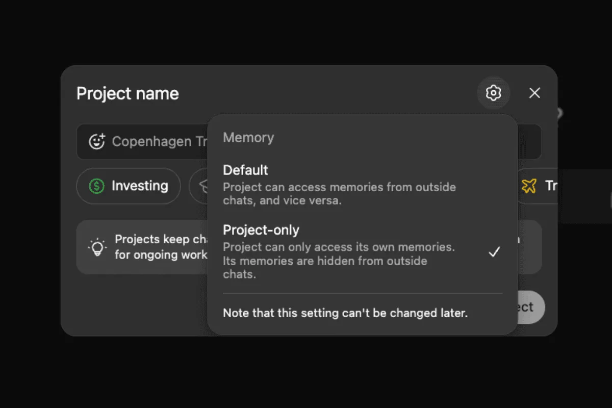 The biggest gotcha: You must create a new project to enable project-only memory. You cannot turn this on for existing projects.