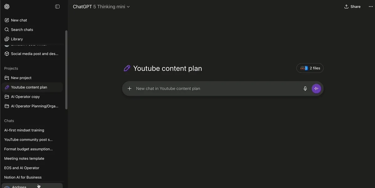 - Create separate chat threads within projects for different topics or workflows