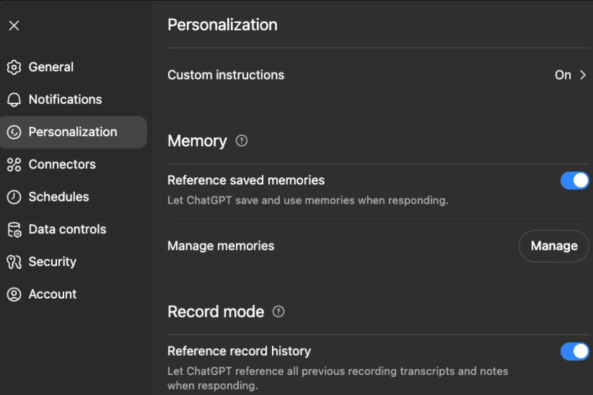 - Go to Settings → Personalization and confirm "Reference saved memory" is enabled